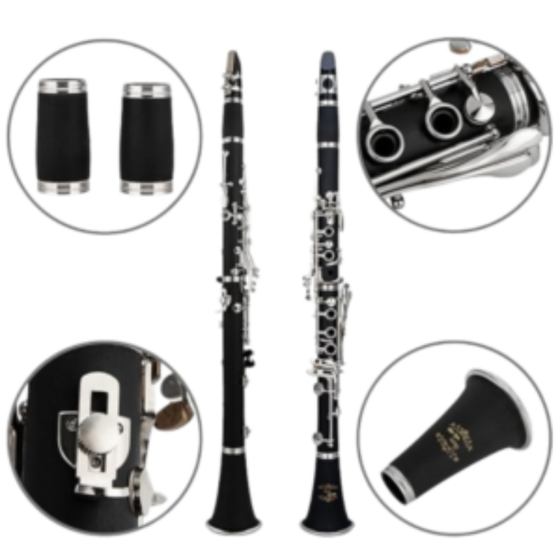 • Ebonite body: Hard rubber material which gives a tone closer to wooden clarinets but with more durability and less sensitivity to humidity.