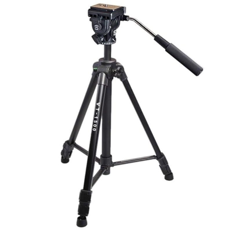 The Kingjoy VT‑1500 is a sturdy, lightweight aluminum tripod designed for both video and photography use. Featuring a detachable fluid drag head, flip‑lock legs, geared center column, and a mid‑level spreader, it delivers smooth pan/tilt movements, accommodates up to 10 kg of gear, and remains compact and portable—making it ideal for studio or on-location shoots.