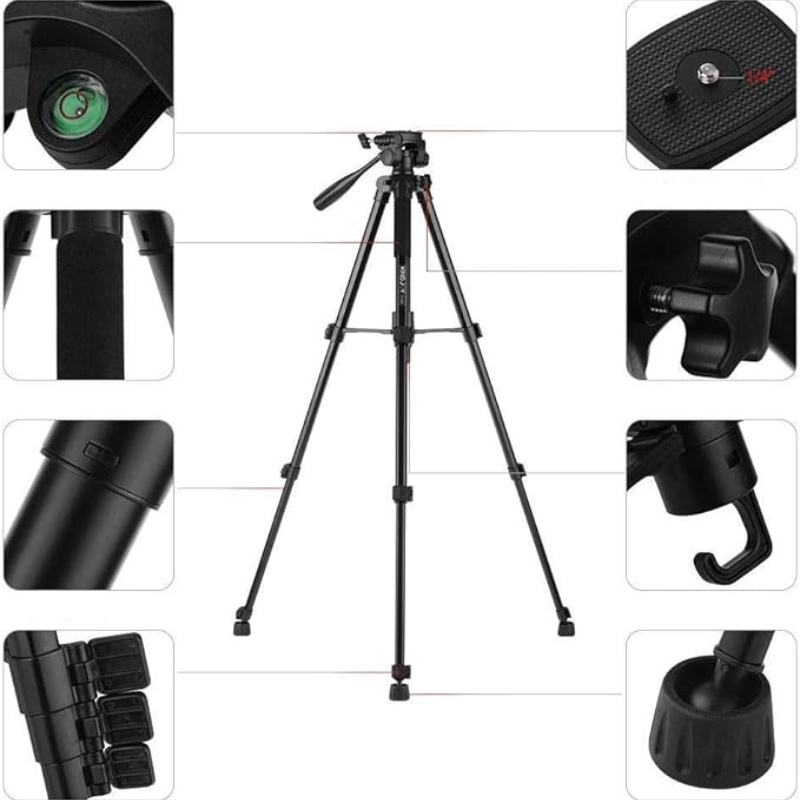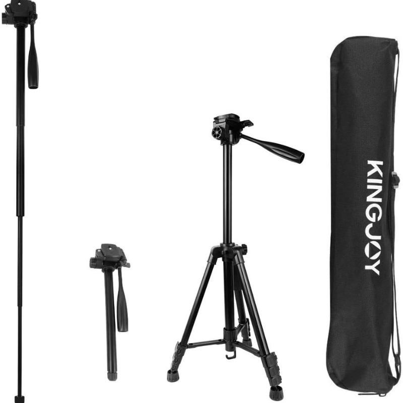 KINGJOY VT-880 A versatile and portable 2‑in‑1 tripod/monopod stand crafted from aluminum alloy. Designed for flexibility in photography and videography, this stand features a pan‑tilt‑swivel quick-release head, bubble level for precision, and a convenient carrying bag for easy portability.