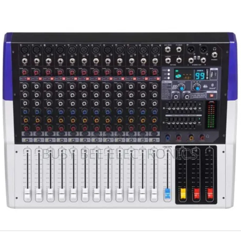 • 12 input channels with individual mute and PFL (pre‑fade listen) switches.