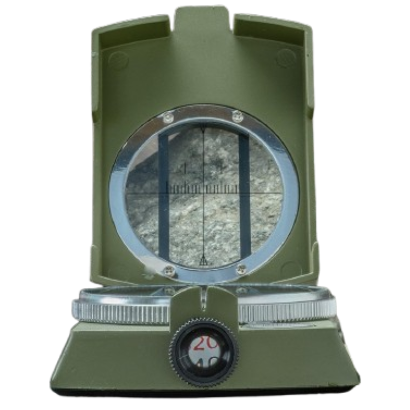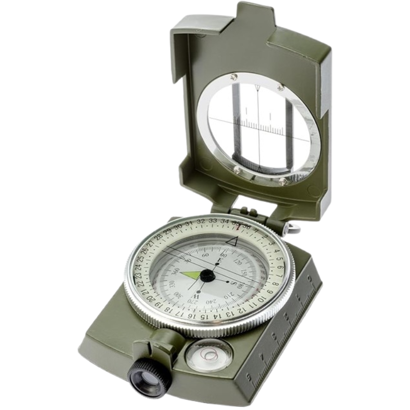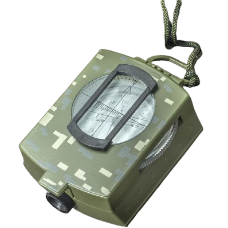 The Prismatic Military Compass is a precision navigation tool designed for field use in military, surveying, exploration, and survival scenarios. It features a built-in sighting system with a prism or lens for accurate bearing readings, a liquid-filled capsule for needle damping, and rugged construction to withstand harsh environments.