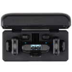 Real-Time Monitoring The receiver includes a headphone output and an OLED display to monitor audio live.