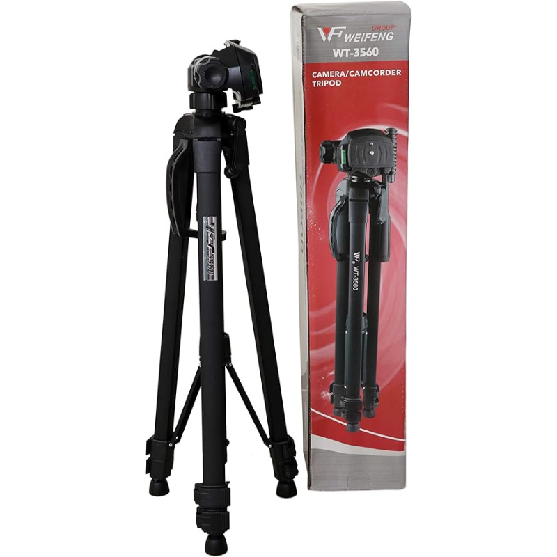 A compact and versatile aluminum alloy tripod, the Weifeng WT‑3560 offers reliable support for DSLR, mirrorless, camcorders, and smartphones (with adapter). Equipped with a 3‑way pan/tilt head and convenient carry handle, it delivers smooth framing and stable shots in a lightweight, travel‑friendly design—ideal for photographers and videographers on the go.