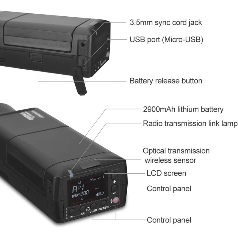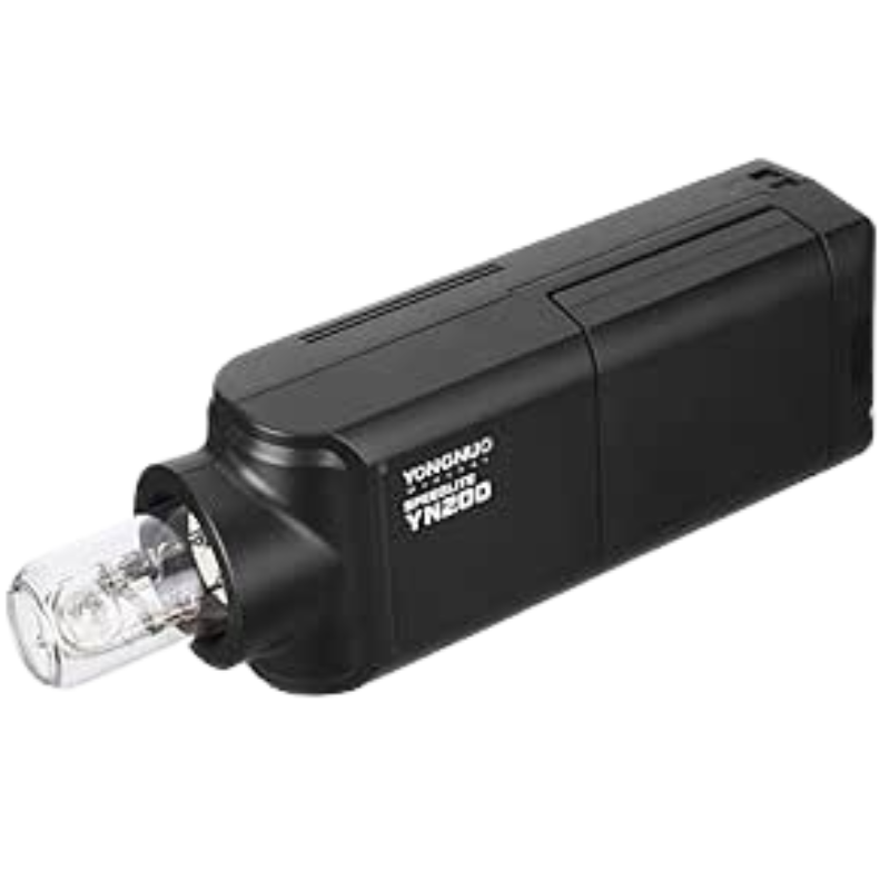 The Yongnuo YN200 is a powerful, portable bare-bulb speedlite delivering 200 Ws of output, complete with TTL and High-Speed Sync (HSS) support. Powered by a 2900 mAh lithium-ion battery, it provides up to 500 full-power flashes, recycles rapidly (0.01 s–2 s), and features a built-in 16-channel, 6-group 2.4 GHz radio receiver compatible with Canon, Nikon, and Sony. Ideal for photographers needing studio-like performance in a compact package.